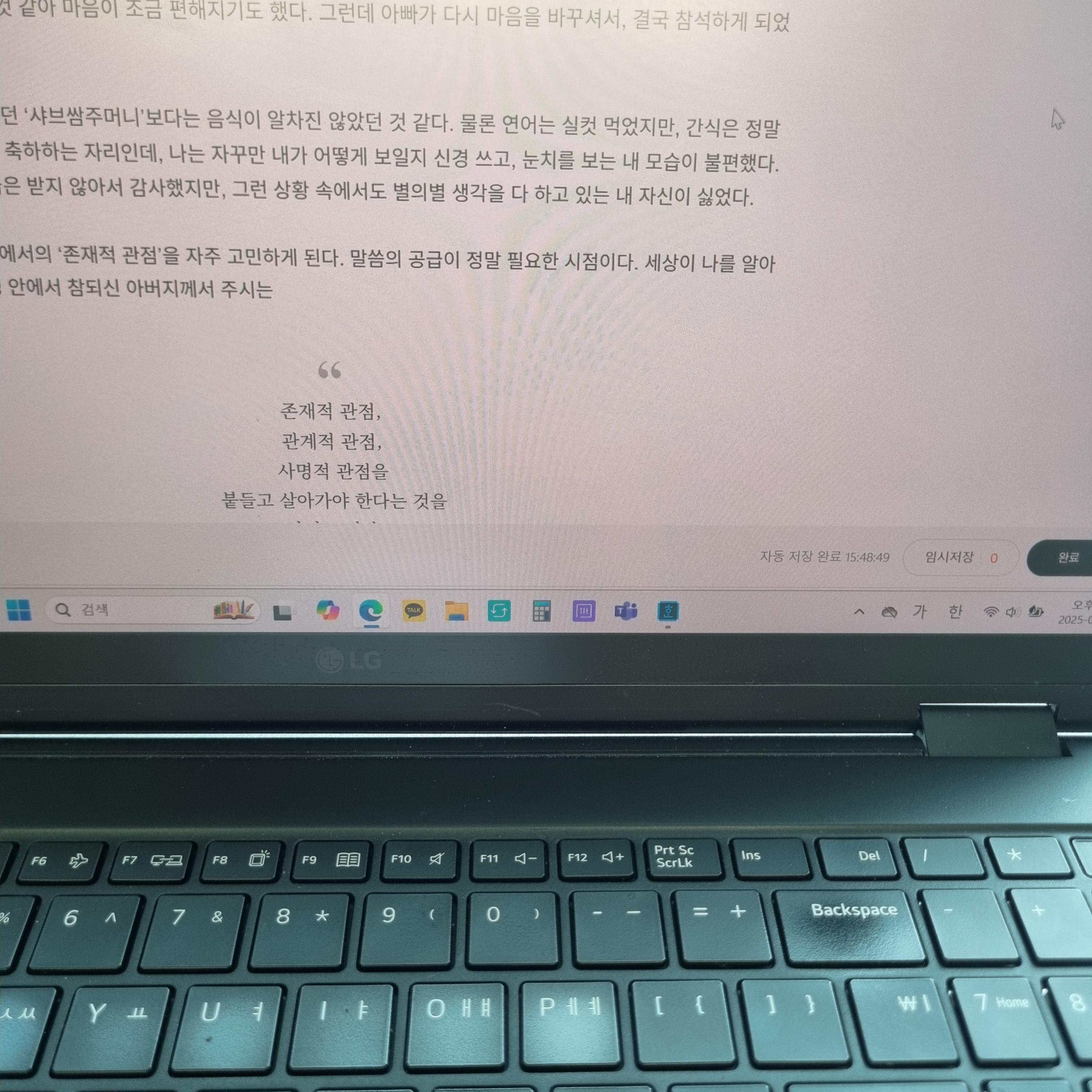 하나님의 형상을 닮아가고 싶다. 이 세상에서 고독하거나 외로울 수 있지만, 본질에 집중하며 믿음으로 전진하고, 기도하고, 말씀을 붙들며, 세상을 따뜻한 인격으로 살아가야 한다는 것을 다시금 깨닫는다. 그래서 오늘, 이렇게 글을 남긴다.