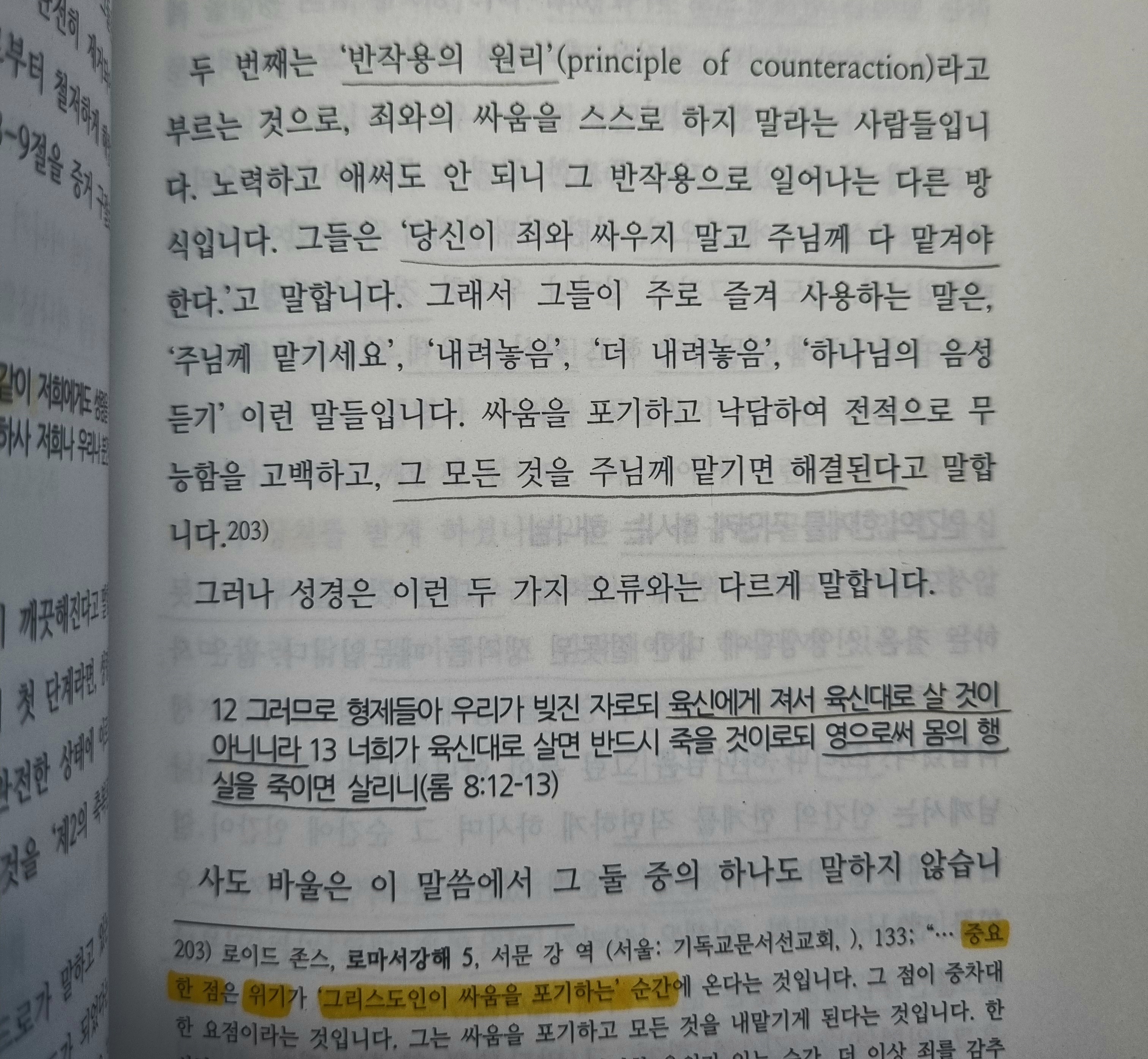 요즘 나는 <성경적 상담 시리즈> 중 『변화는 믿음에서』라는 책을 읽고 있다. 이 책을 통해, 나의 행동에 종교적 열심이 섞여 있었다는 사실을 인정하게 되었다. 내가 믿음으로 행한다고 생각했던 것들조차, 결국은 내 인간적인 열심과 의욕에서 비롯된 건 아니었을까.