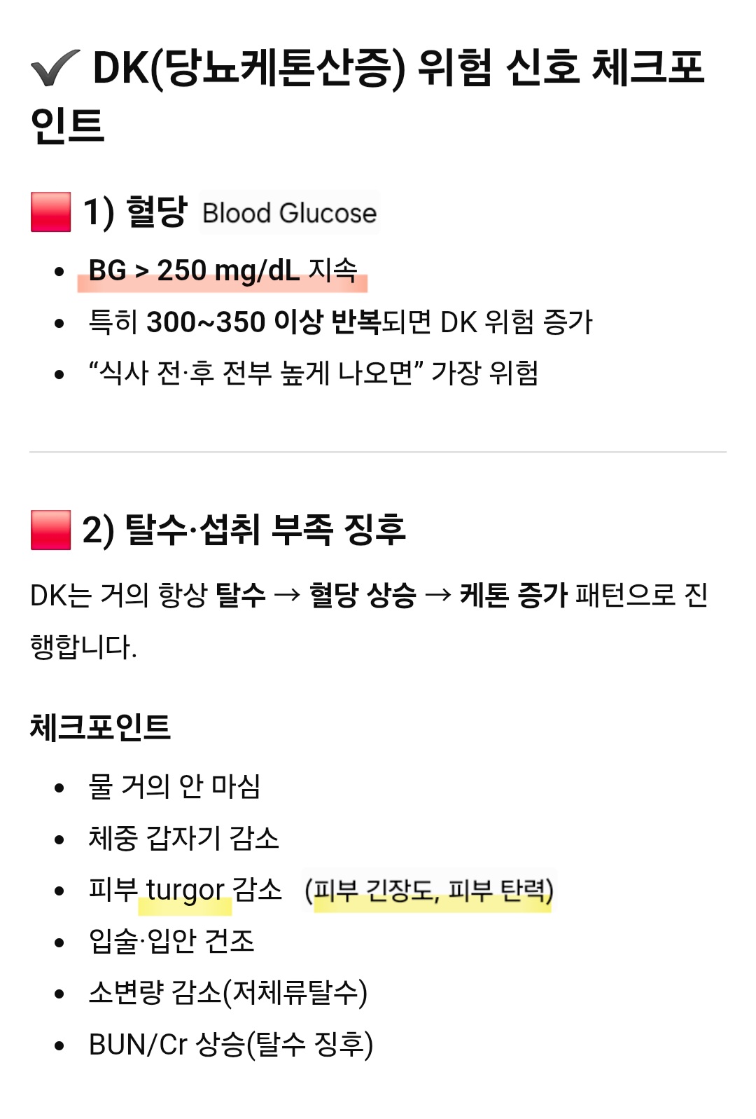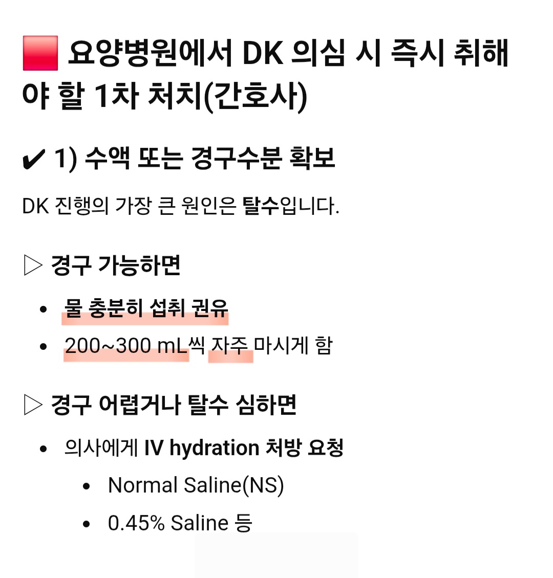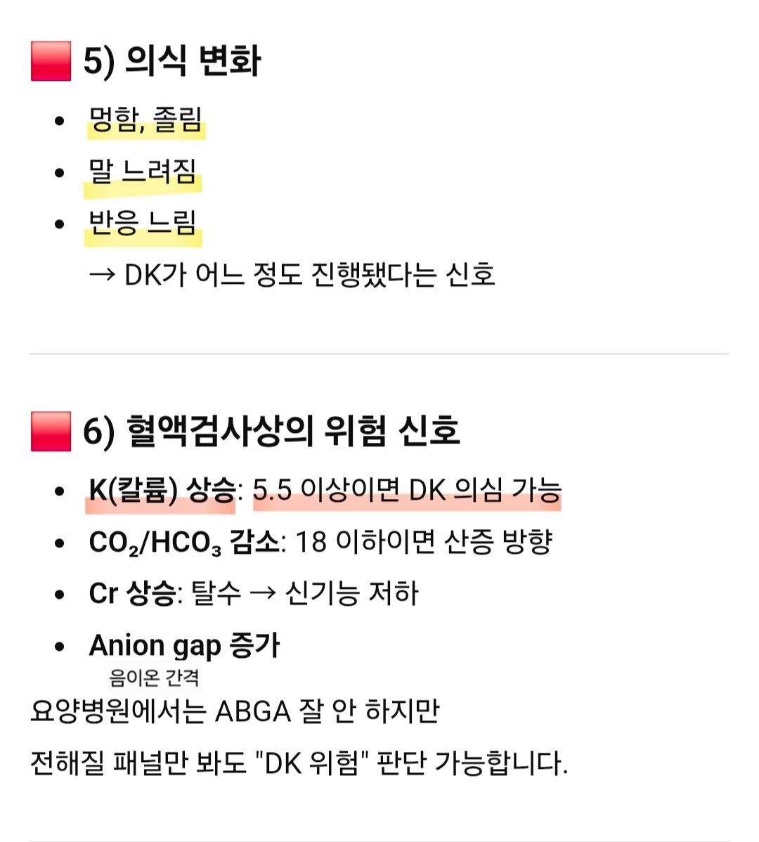 31일. 당뇨 조절도 잘 안 되는 환자분이 있는데, 포타슘 수치까지 조금 높게 나왔다. (라틴어와 한국어 이름으로는 칼륨, 영어로는 포타슘!, 화학기호로는 K ㅎㅎ) 그래서 인계 중 DK로 빠질 수 있다는 말씀을 듣고, 다시금 정리해 본다.