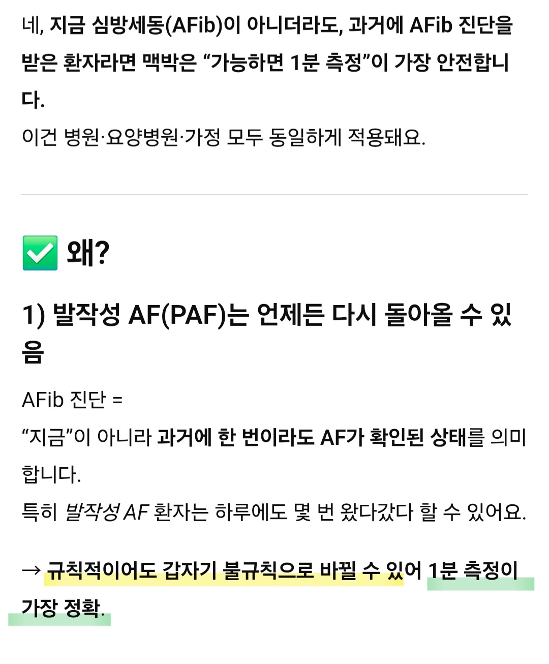29일. 환자분들 중에 부정맥이 있기도 하고, 약으로 잘 조절되시는 분들도 있으시더라고요. 이왕이면 심방세동 진단을 받은 환자분들은 시간이 걸리더라도 1분의 맥박을 잡으려고 하고 있어요.