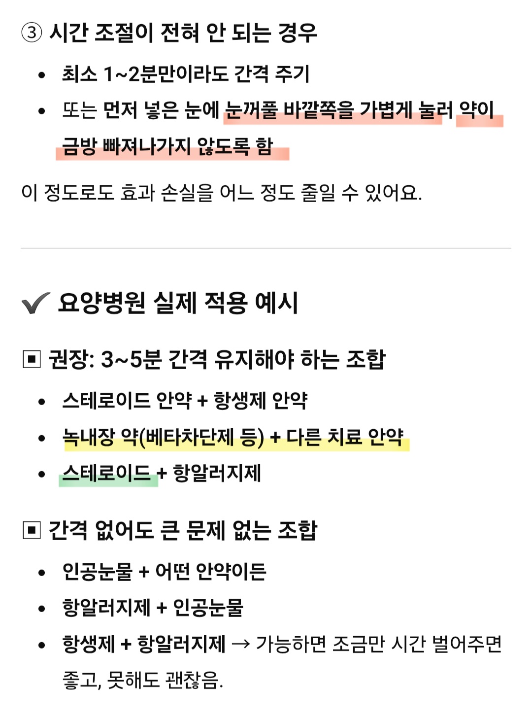 27일. 선생님들마다 안약을 넣는 방법이 다양하던데, 현장에서는 FM대로 할 수는 없어도 올바른 방법은 알아야겠다고 생각하며 올려본다. 아무리 바로 알아도 환자분들의 협조가 없다면 힘들다는 것 또한 기억하면서~
