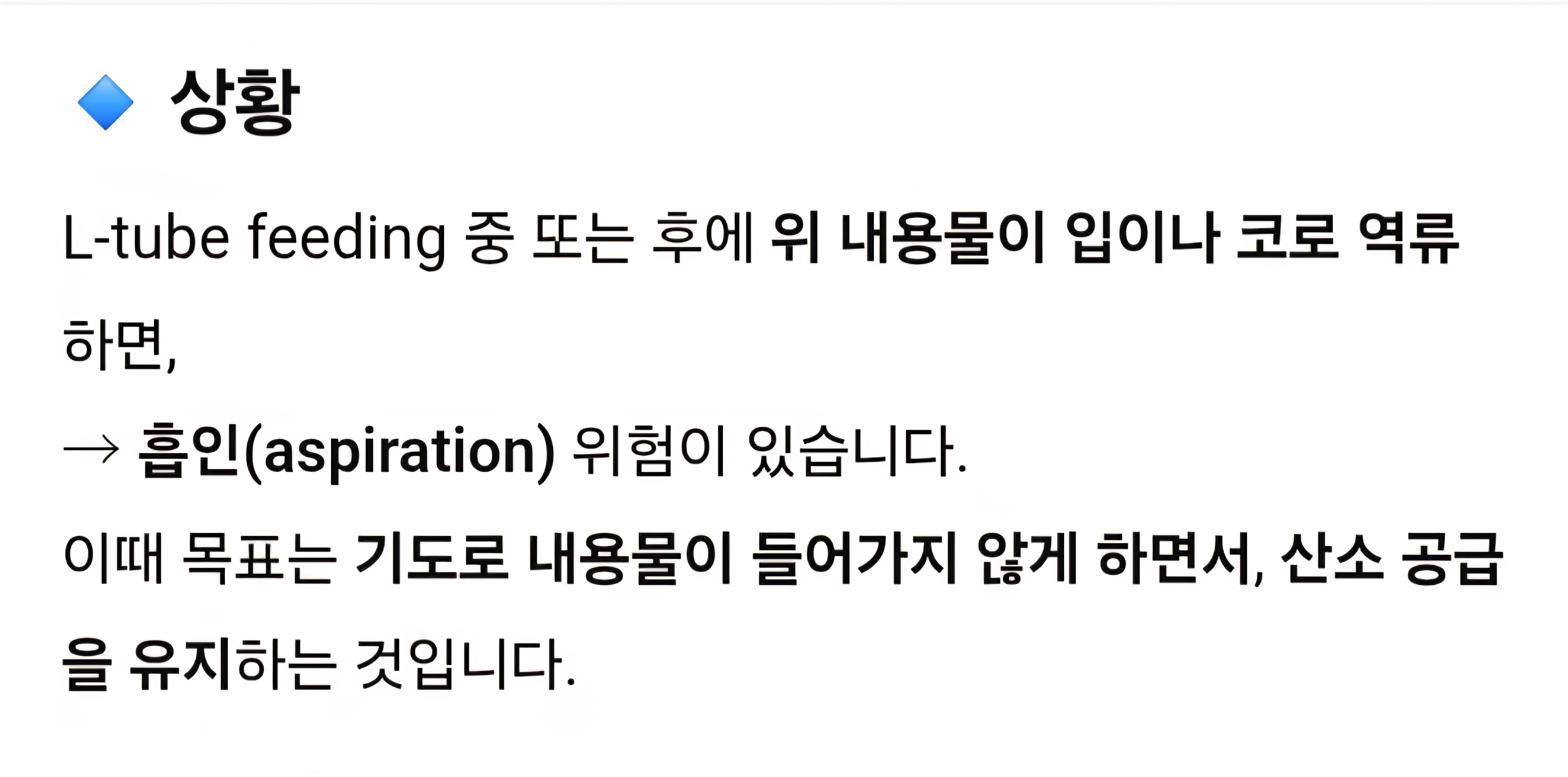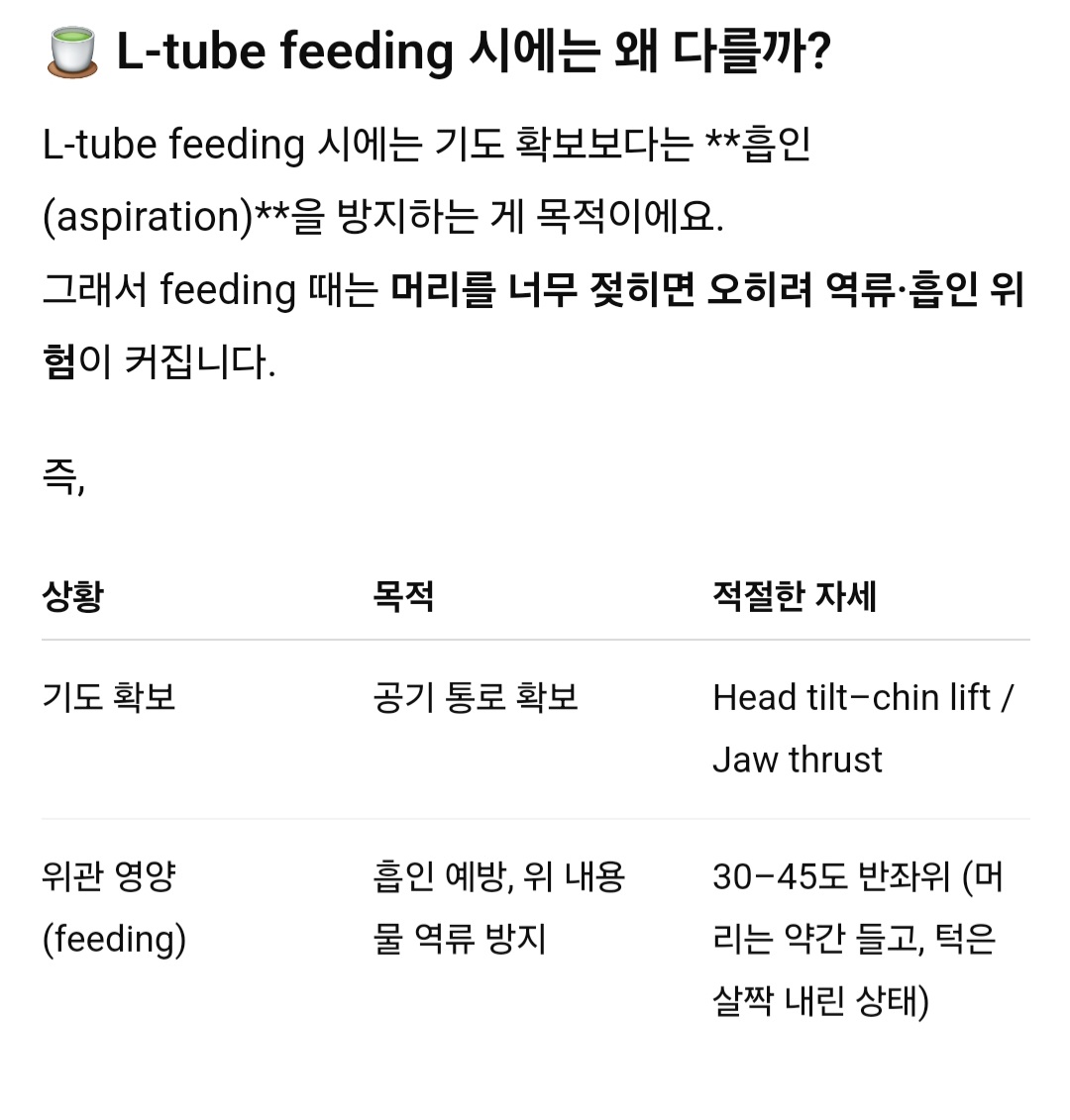 - L-tube feeding시 참고사항