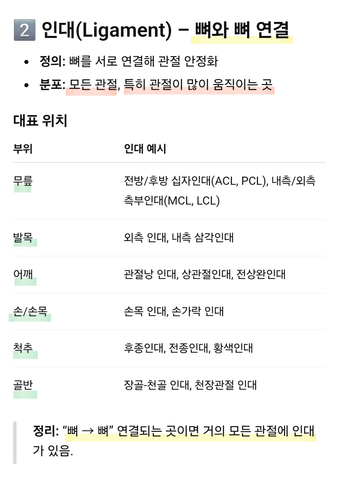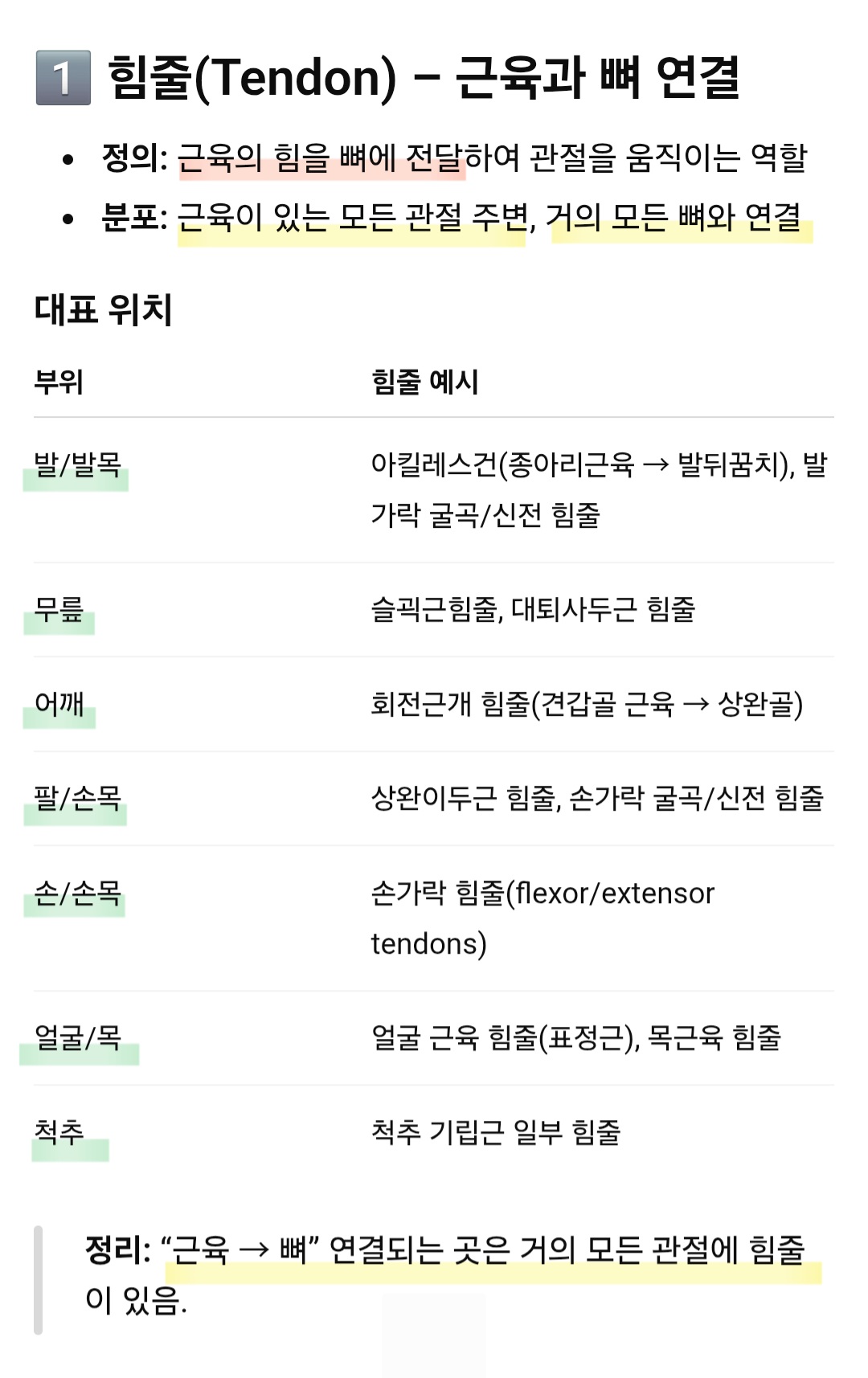 20일. 힘줄은 관절의 움직임을 돕고, 인대는 뼈가 잘못 움직이지 않도록 고정하여 관절의 안정화를 준다!