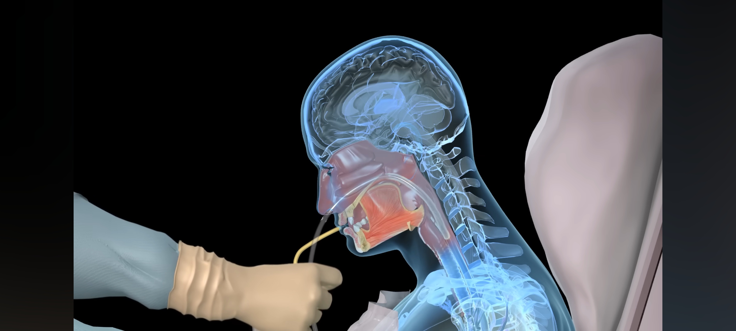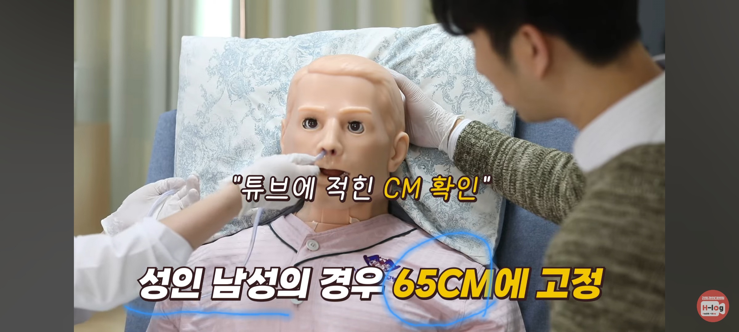 9. 표시된 부위까지 삽입 → 튜브 위치 확인