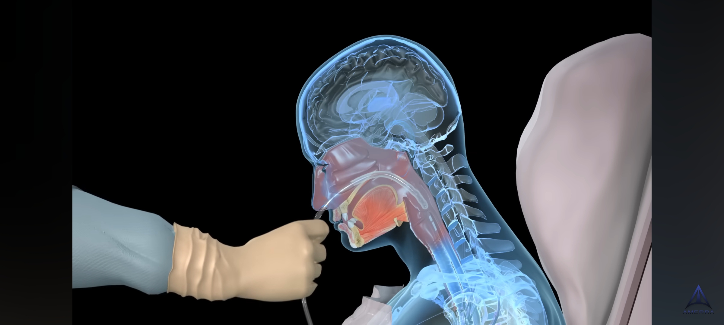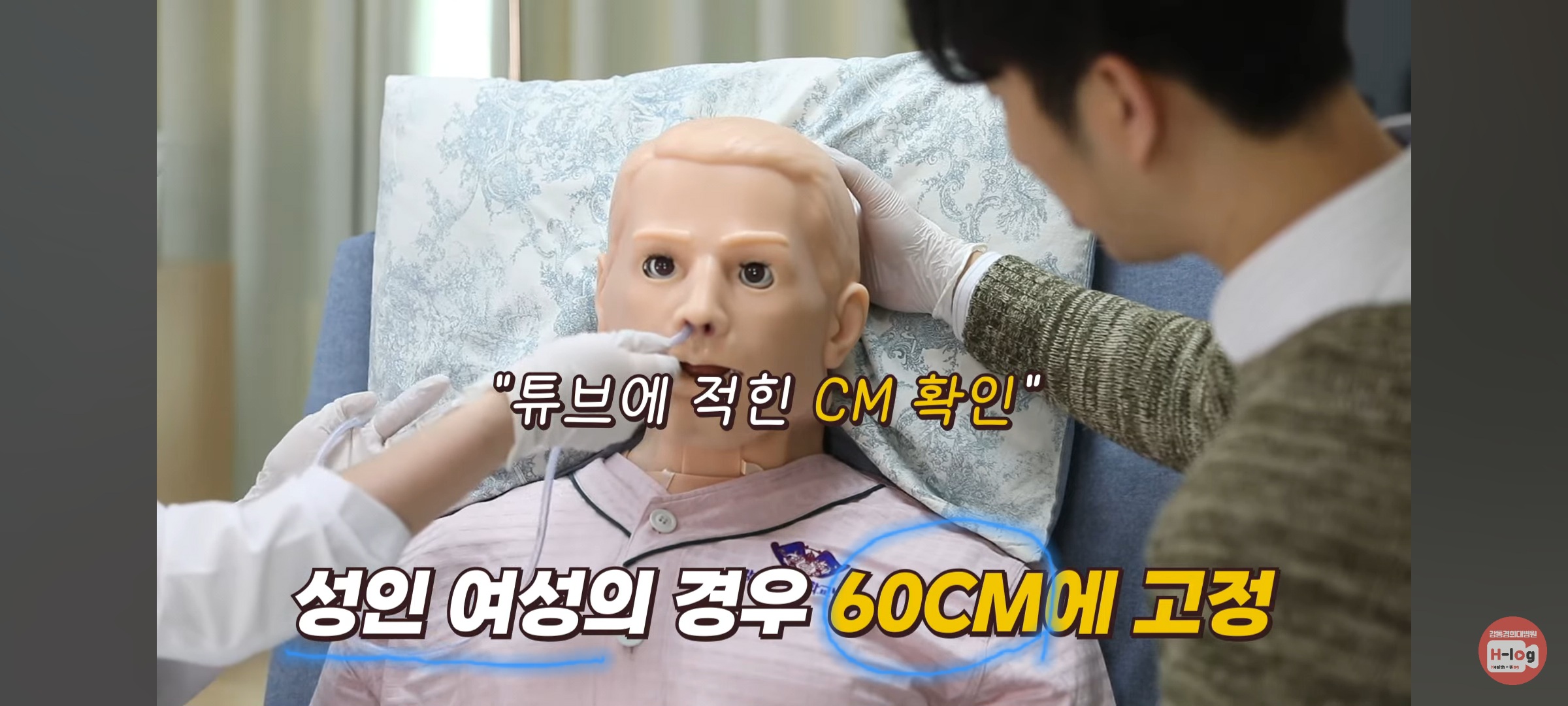 9. 표시된 부위까지 삽입 → 튜브 위치 확인