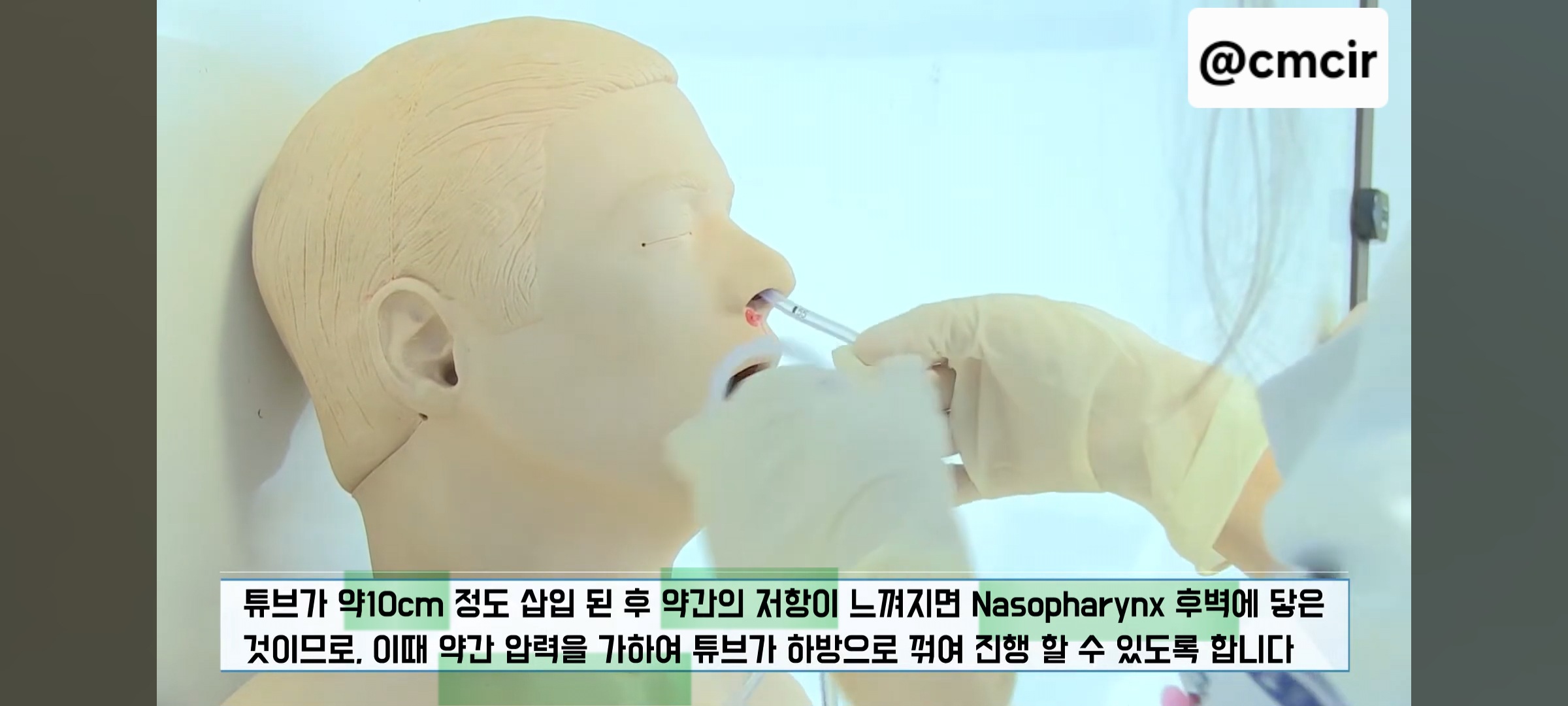 7. 대상자 고개 약간 들게 함 → 천천히 후하방으로 넣어 상인두의 후방으로 삽입