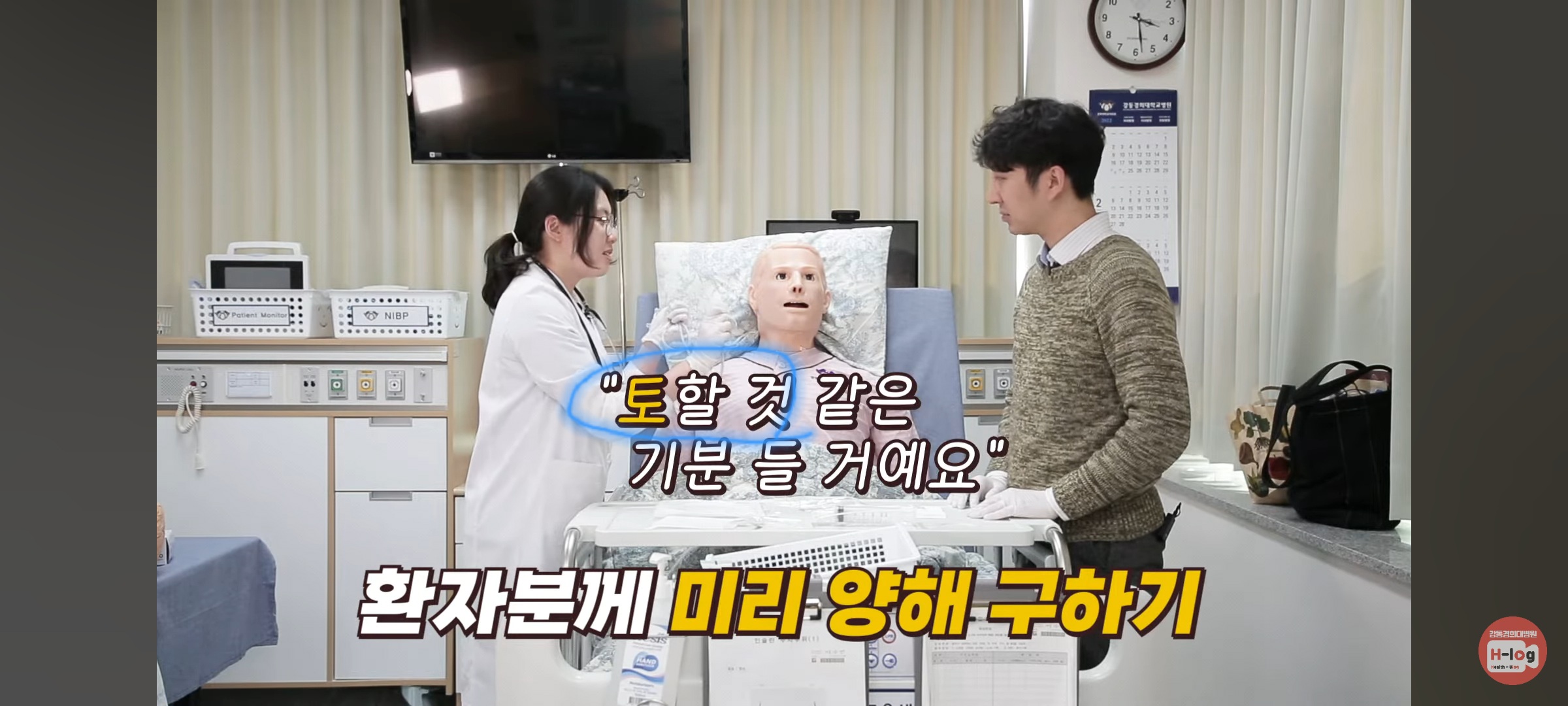 구역질 하면 잠깐 쉬게 하고, 입으로 짧은 호흡하게 함 (진정)